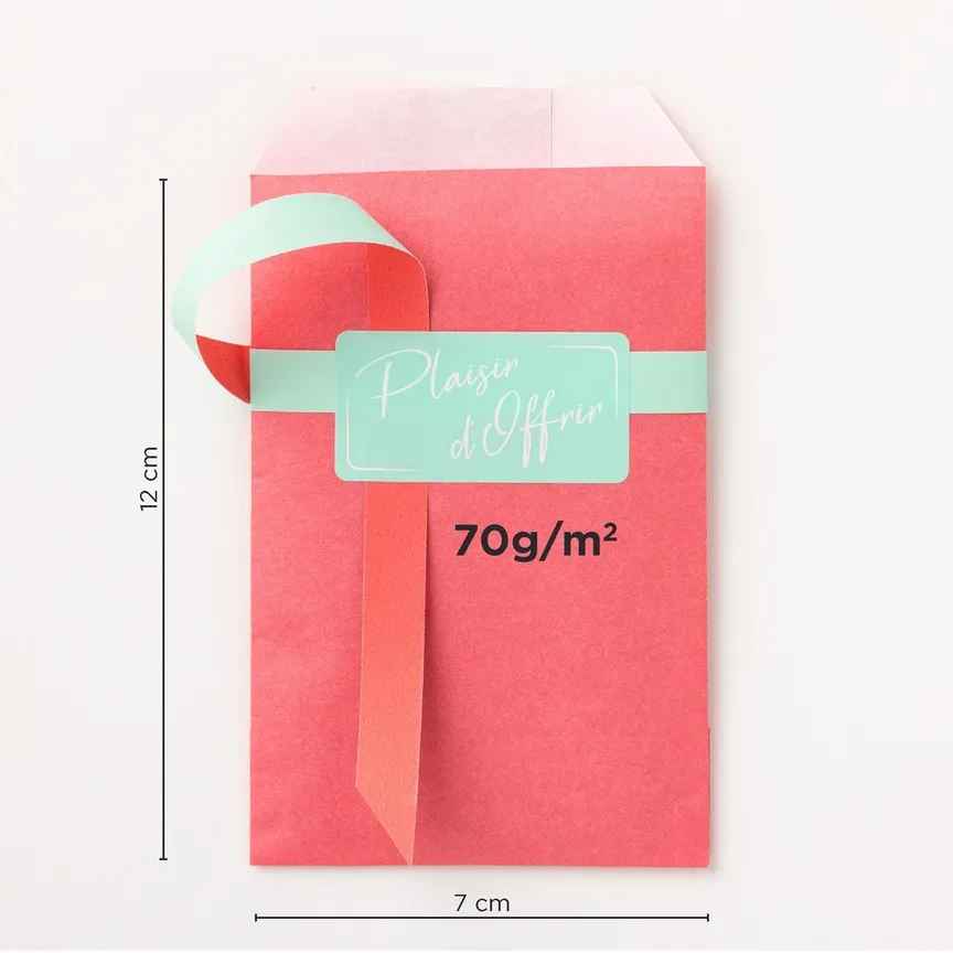 POCHETTES CADEAUX KRAFT VERGÉ FRAMBOISE 7X12CM - PAR 150