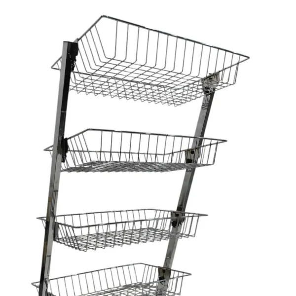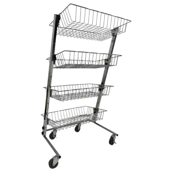 Paniers inclinables 3 positions. Sur roulettes. Chaque panier supporte un poids de 10kg maximum