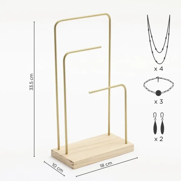- Association variée : présentoir bijoux pour colliers, bracelets et boucles d’oreilles sur un même support