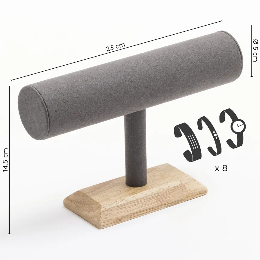 • Rendu réaliste : présentoir bracelet en bois en forme de tube pour bracelets, joncs, manchettes ou montres, assurant un porté de bijou authentique