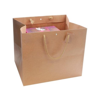 Sac résistant en kraft 175 g/m², à très grands soufflets pour le transport de boîtes pâtissières, plateaux-repas, compositons gourmandes, coffrets de vin…